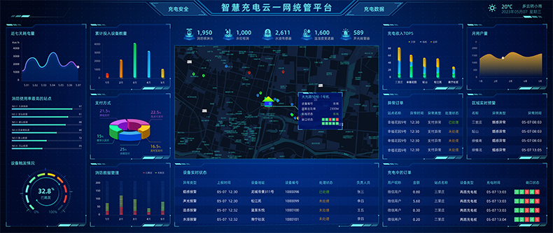 支持多个充电桩不同品牌的统一对接管理;支持多个充电站点的统一管理