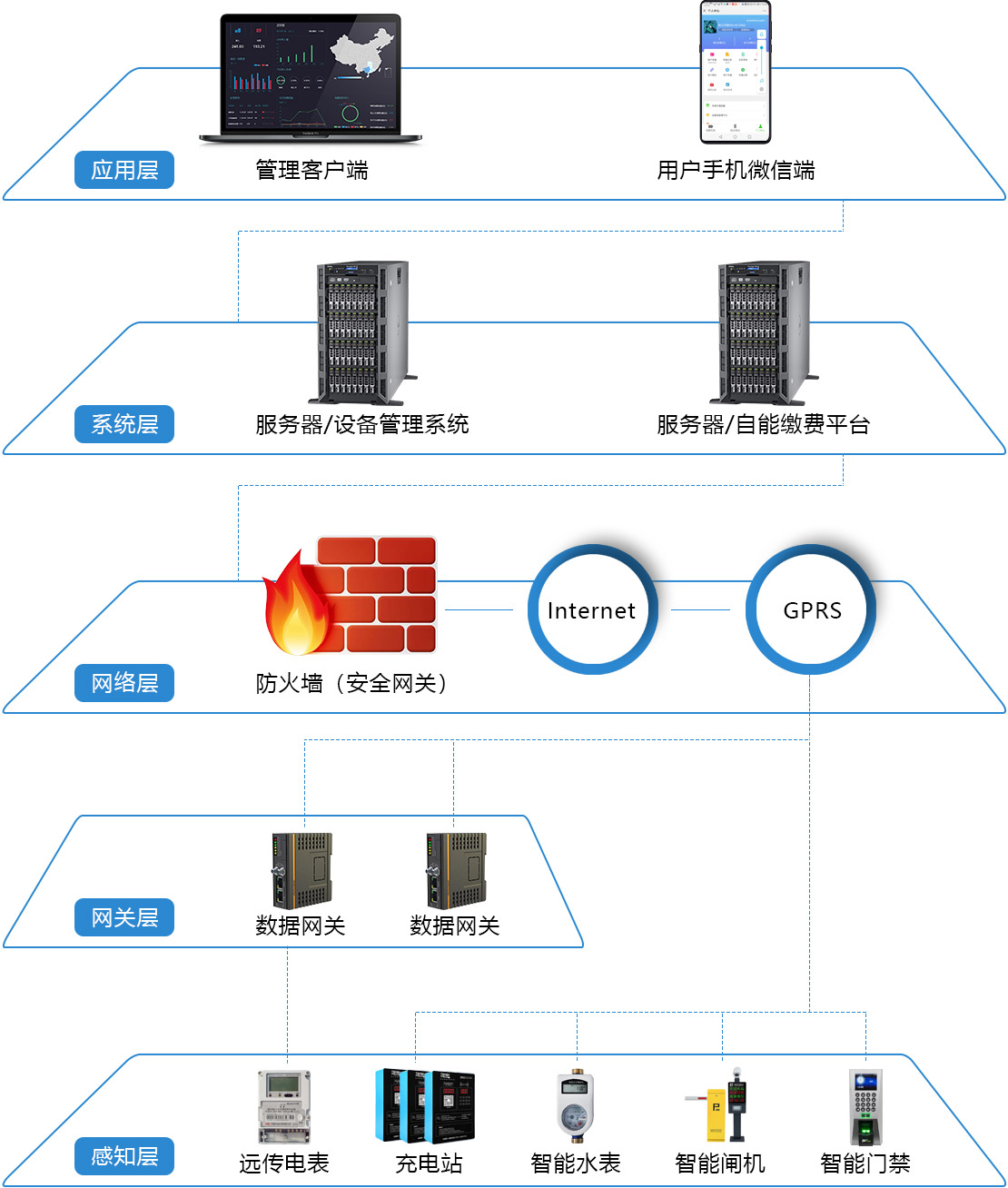 智能系统统一管理传统的水电煤暖、物业费、停车费、充电桩等,从硬件智能终端到软件平台轻松管理小区